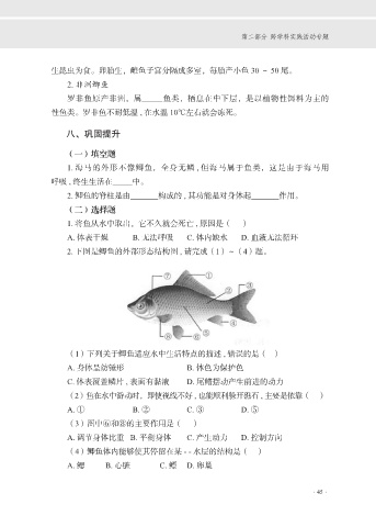 2. 鲫鱼的脊柱是由 构成的 , 其功能是对身体起 作用。