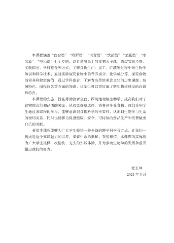 生通过该课程的学习,能够意识到食物科学的重要性,认识到生物学与生活