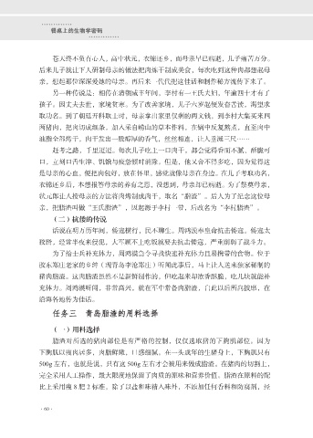 两猪肉,把肉切成细条,加入采自崂山的草本作料,在锅中反复熬煮,直至肉中