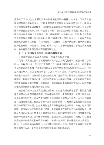 量发展需要与生态环境相协调,实现旅游生态化、生态旅游化。生态文明作为社