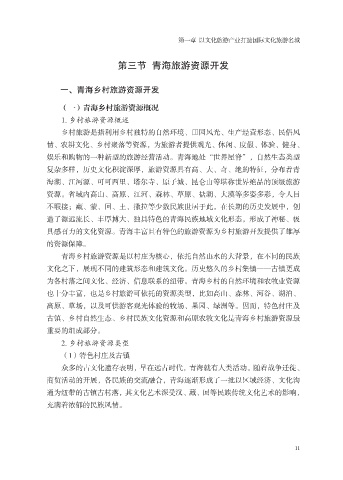 具感召力的文化资源。青海丰富且有特色的旅游资源为乡村旅游开发提供了雄厚