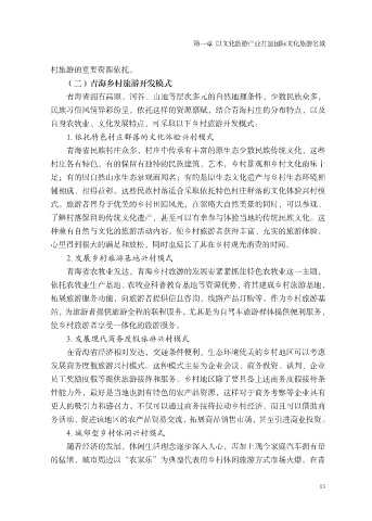 民族习俗风情异彩纷呈,依托这样的资源禀赋,结合青海村庄的分布特点,以及