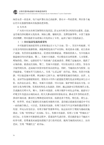 俗,提高农民素质。第五,发展乡村旅游,可以挖掘、保护和传承农村文化。以