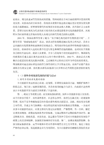 宿农庄、观光农业园等发展的政策措施。韩国政府出于两方面的原因注重农村观