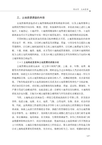 候、土壤、植被、地质、地貌、水文等的土地构成要素调查,以反映土地利用状