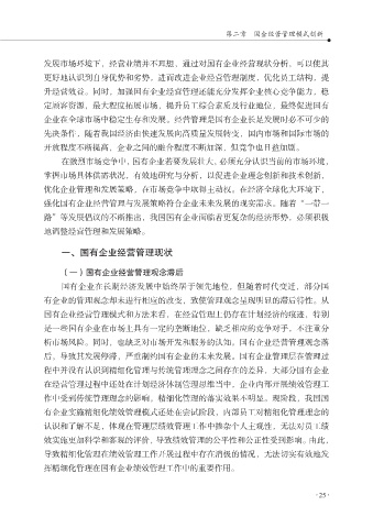 企业在全球市场中稳定生存和发展。经营管理是国有企业长足发展时必不可少的