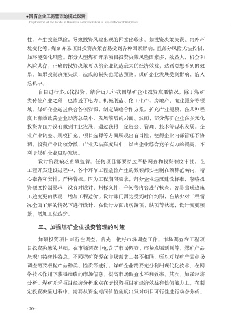 境变化等。煤矿开采项目投资决策容易受到各种因素影响,且部分风险无法控制,