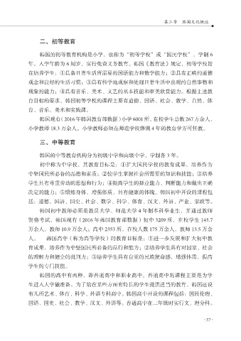 资格考试。韩国现有(2016 年韩国教育部数据)初中 3209 所,在校学生 145.7