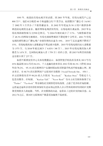 1991 年,韩国的有线电视开始试播。到 2001 年年底,有线电视用户已达