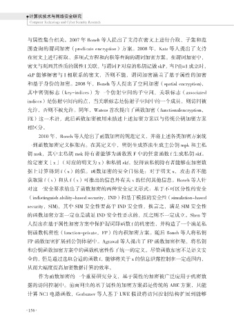 钥函数机密性(function-private,FP)的内积加密方案。随后 Boneh 等人将私钥