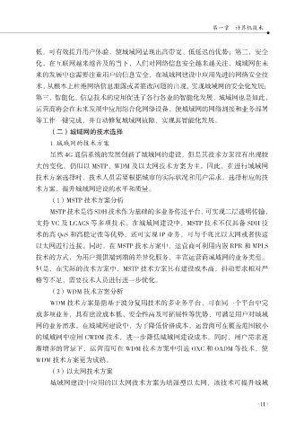 大的变化,仍旧以 MSTP、WDM 及以太网技术方案为主。因此,在进行城域网